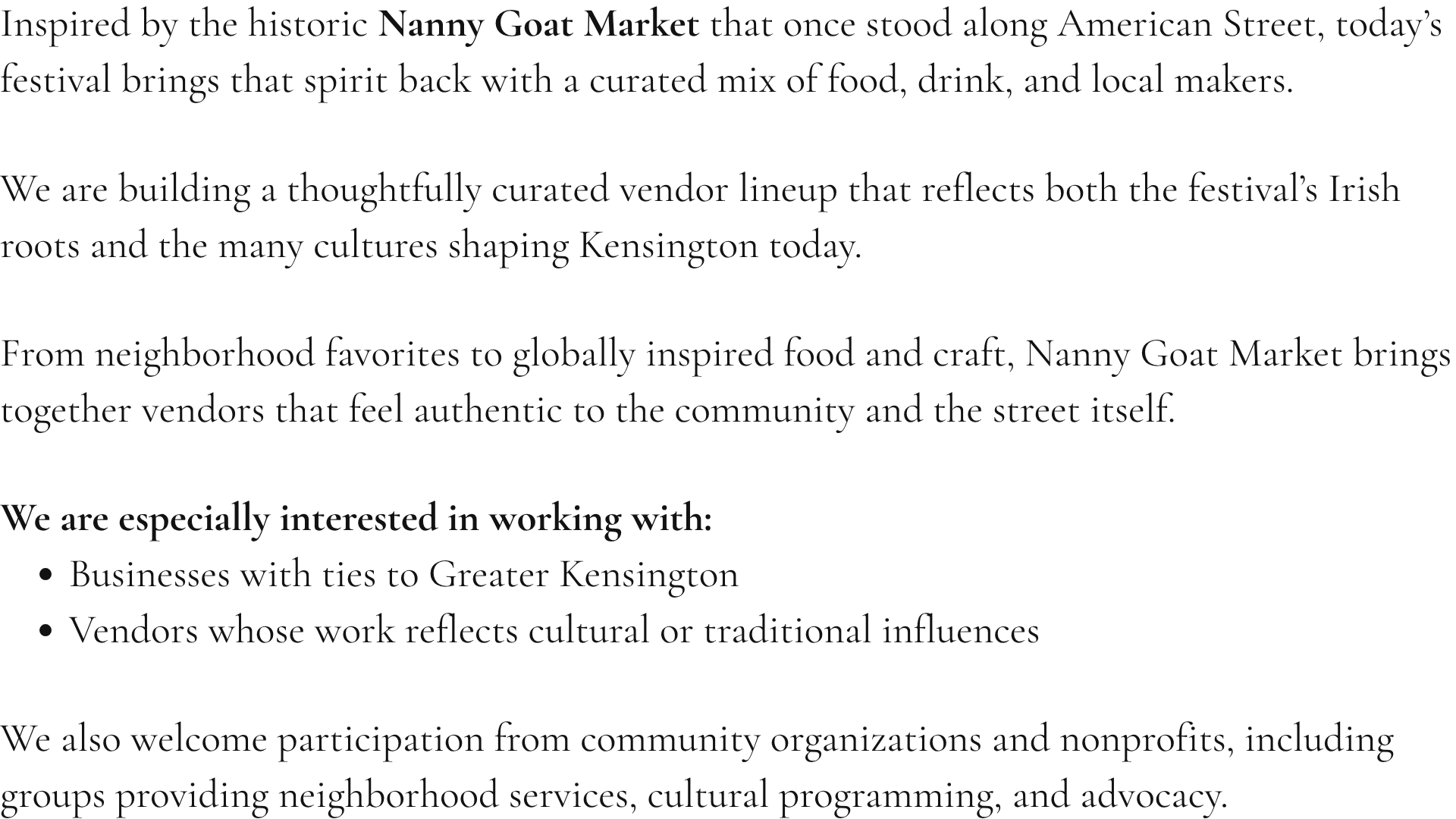 Space is limited. Applications are reviewed on a rolling basis.Please review our preliminary vendor guidelines and event logistics here.